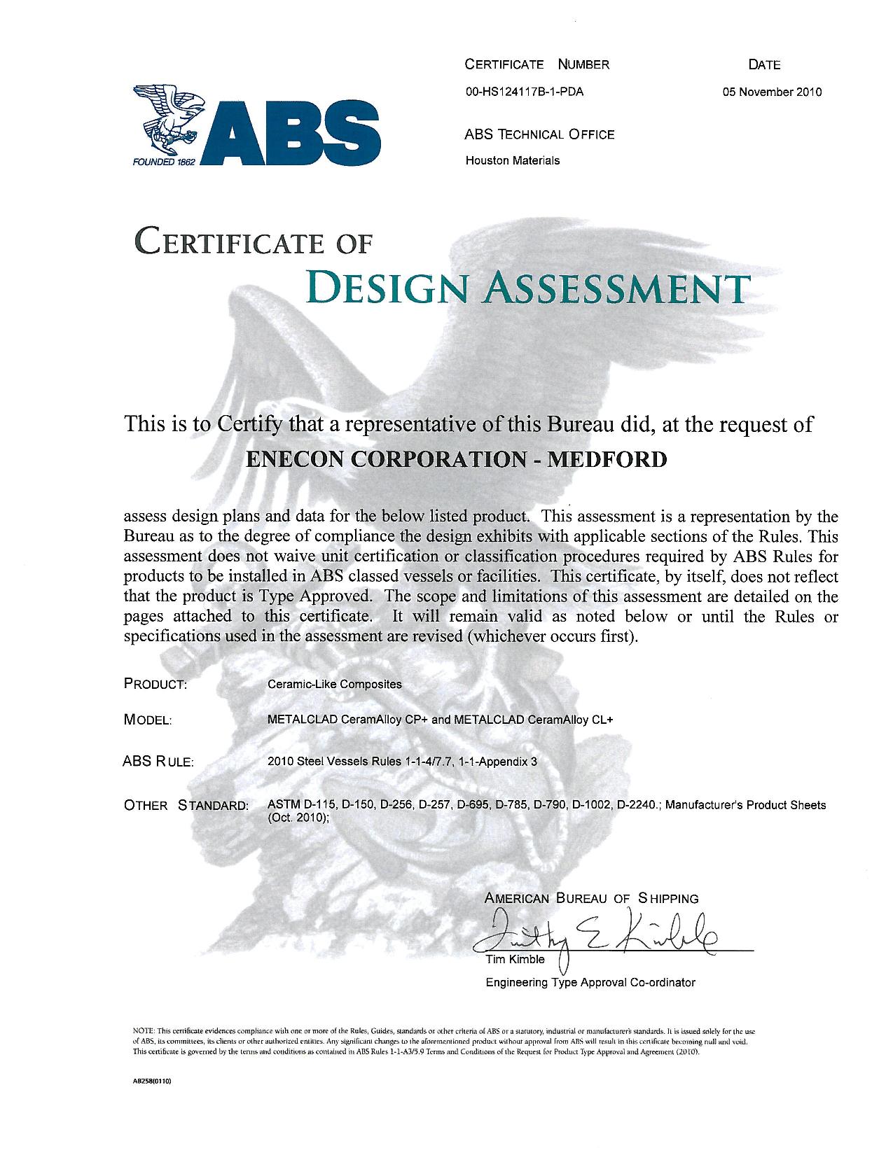 CERTIFICATIONS & APPROVALS