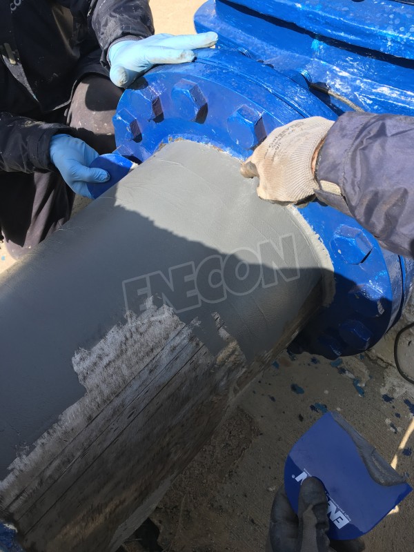 We used ENECON’s SpeedAlloy to stop the leakage, CeramAlloy CL+AC for protection. METALCLAD SpeedAlloy is a quick curing, 100% solids, polymeric ‘leak stopper’ used for making fast, effective repairs to equipment which must be returned to service almost immediately.