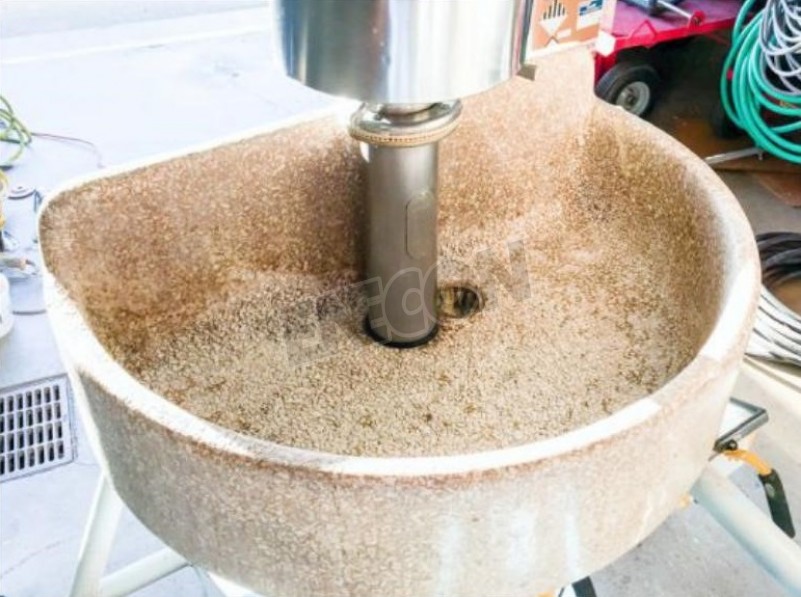 At a northern California wastewater treatment facility this 40 year old industrial locker room sink was in a state of disrepair. Sinks like this are preferred at such facilities because of their size and long term durability. After 40 years in use the inside of the sink was worn down to the aggregate. The maintenance engineers at the facility were quoted over $5,000 for a replacement sink.