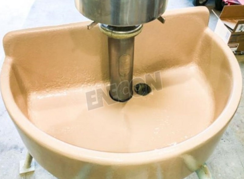 At a northern California wastewater treatment facility this 40 year old industrial locker room sink was in a state of disrepair. Sinks like this are preferred at such facilities because of their size and long term durability. After 40 years in use the inside of the sink was worn down to the aggregate. The maintenance engineers at the facility were quoted over $5,000 for a replacement sink.