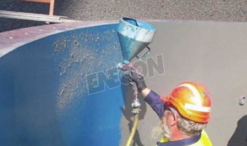 Immediately after blasting, the first 2 layers of CeramAlloy CL+AC were spray applied using hopper guns. A third layer was then applied by roller and brush.