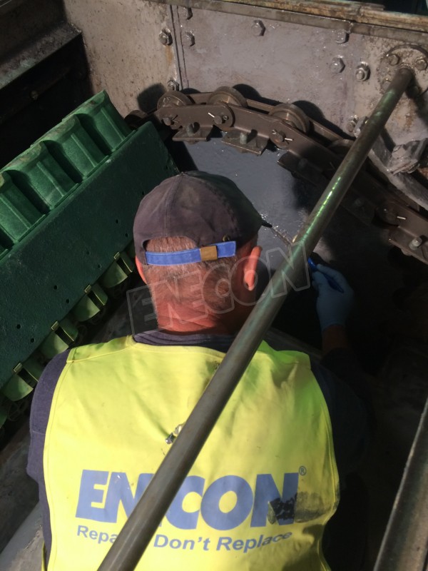 All areas needed build up were captured using DurAlloy, our fast setting 2 component paste high performance polymer paste. Then we applied by brush and rollers two coats of CHEMCLAD XC in order for the components to remain unharmed from the various chemicals used during washing process.