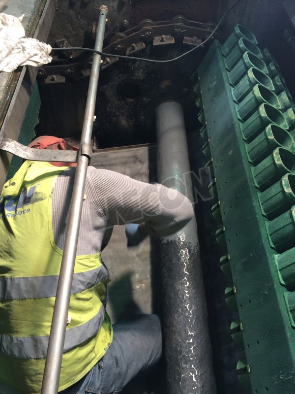 Client was experiencing problems in a critical section of the cycle of bottling beers. The shaft that its work was to operate the bottle washer was facing severe deterioration and it was literary falling apart with metal parts coming out with bare hands.