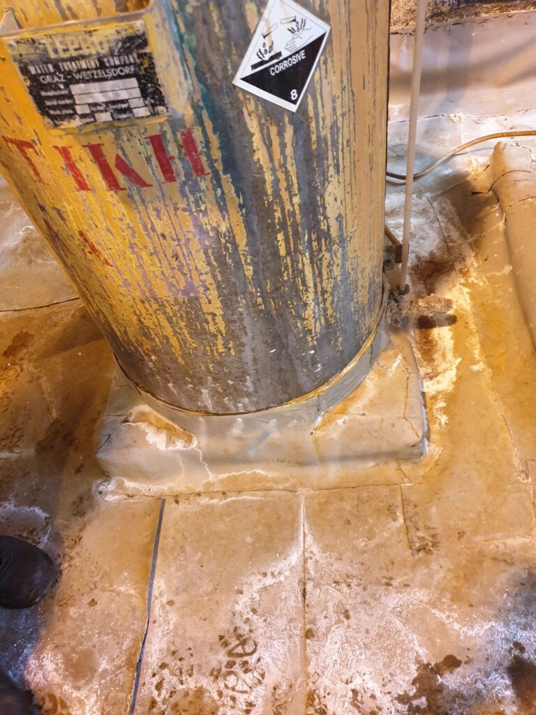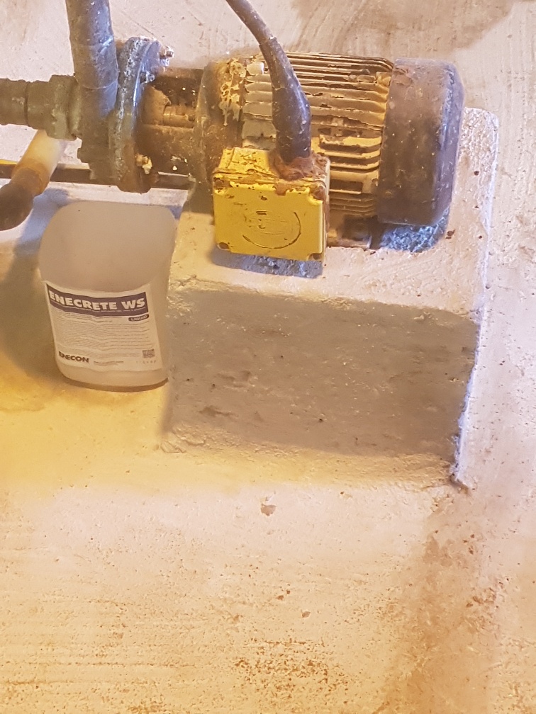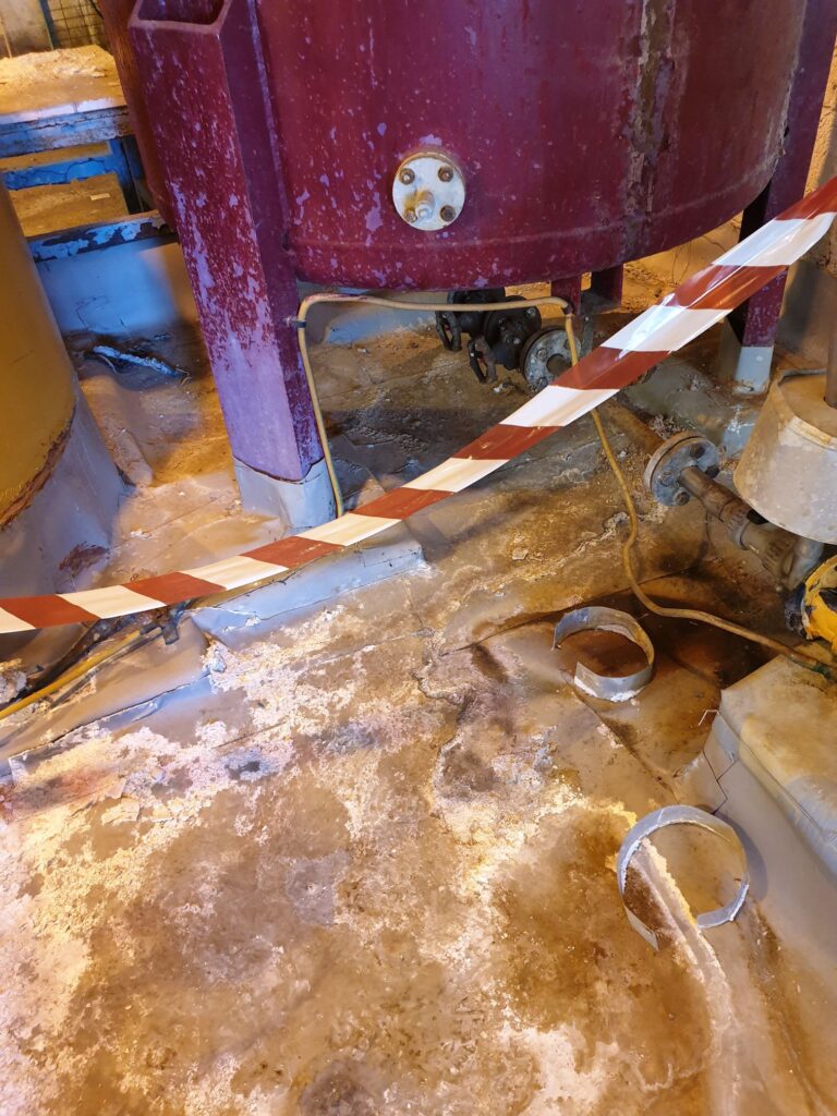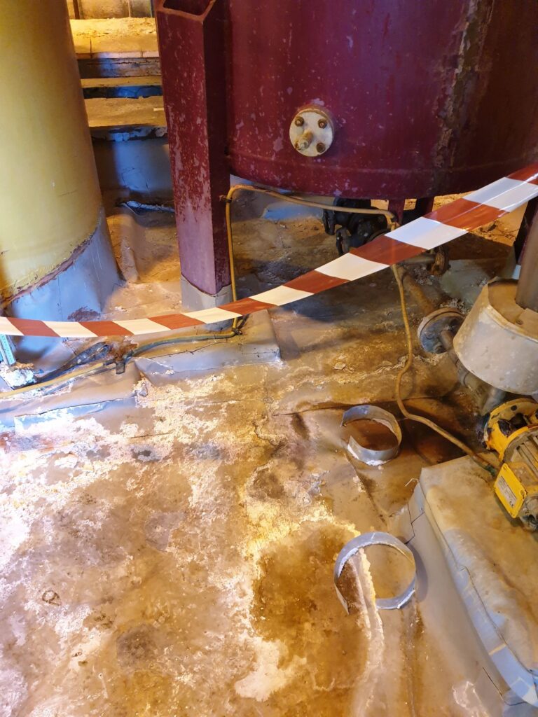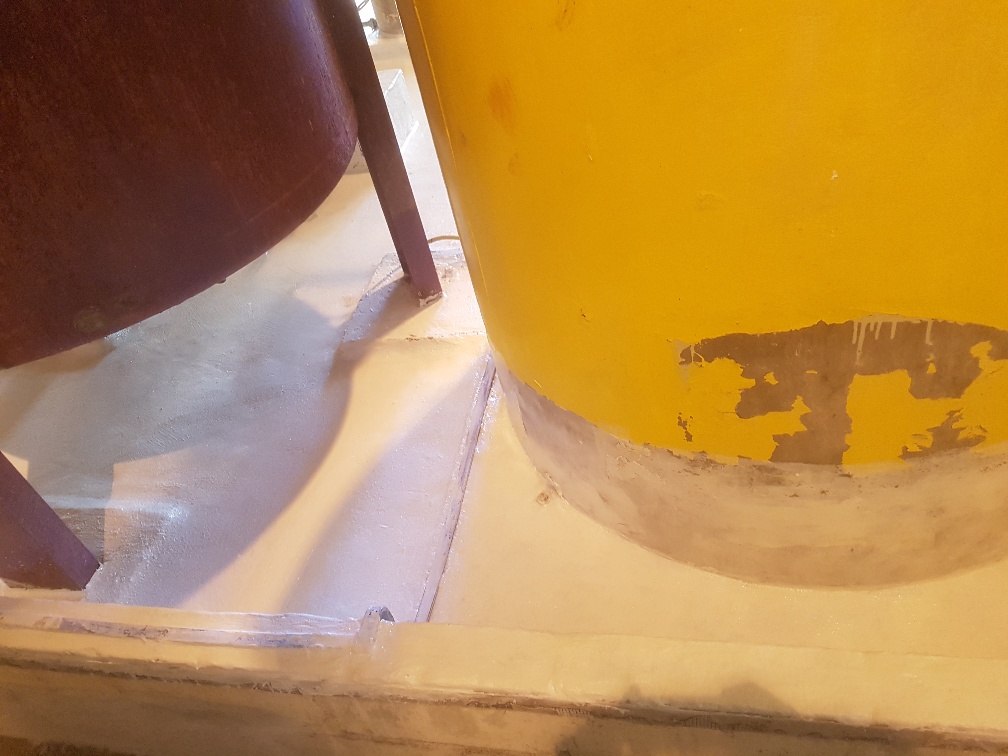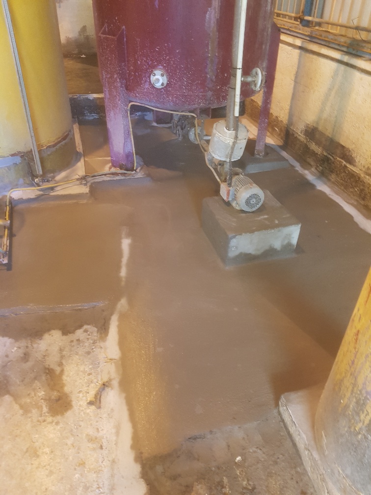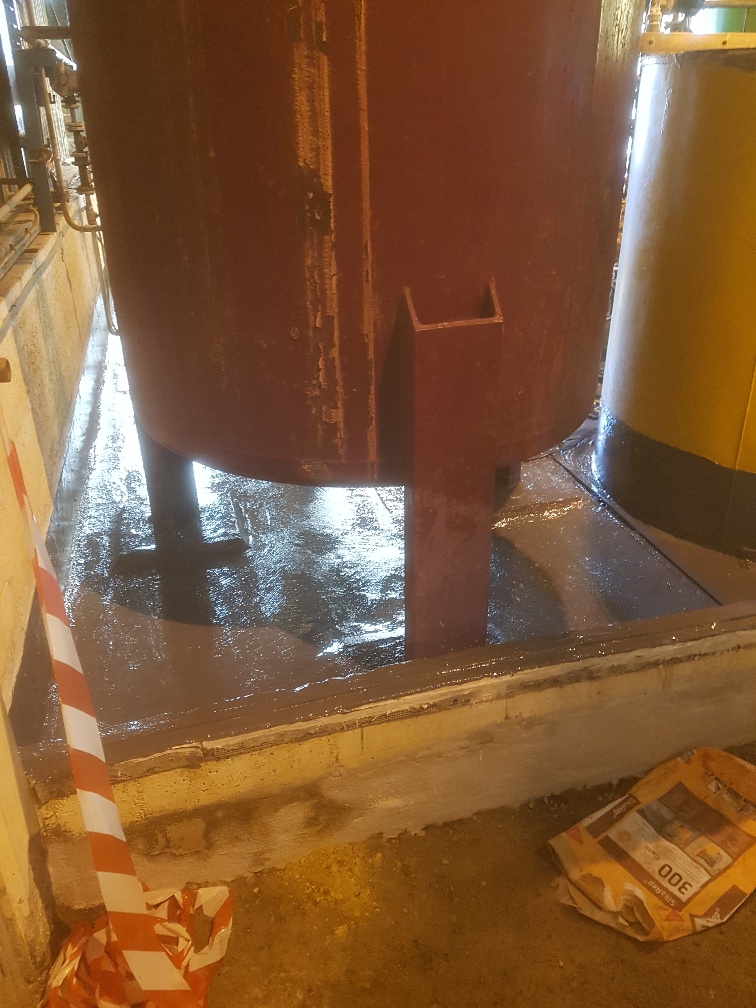 The very corroded concrete bases of the chemical containment tanks were first cleaned from debris and loose material and then they were rebuilt. Afterwards, CHEMCLAD P4C was used as a primer.