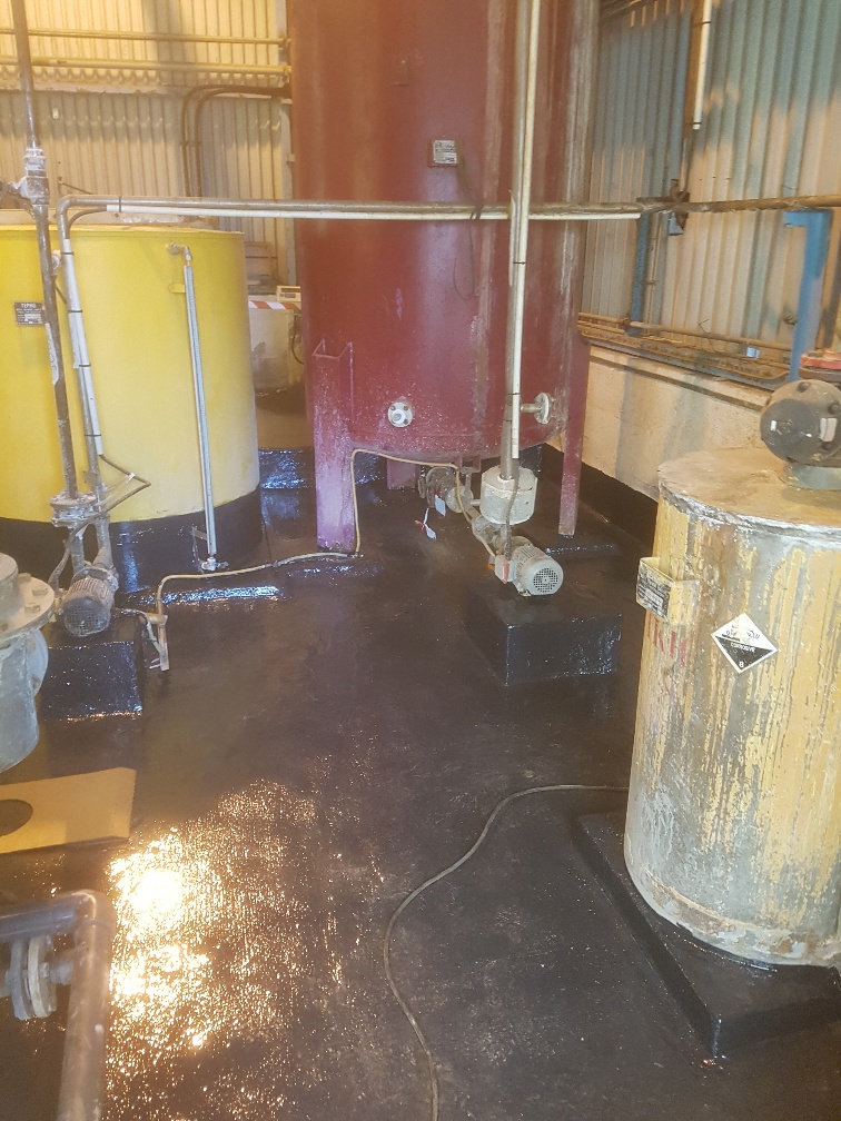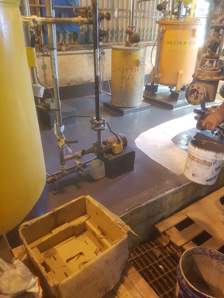 As a top coat, CHEMCLAD XC was utilized which is the optimum solution for the protection of the concrete area form the sulphuric acid and caustic soda that the tanks store.