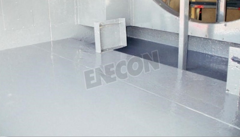 The interior of this cooling tower was grit blasted. The doubler plates were ad-hered in place then faired with DurAlloy. Two coats of CHEMCLAD SC were then applied. The fan shroud was coated separately with ENESEAL CR.