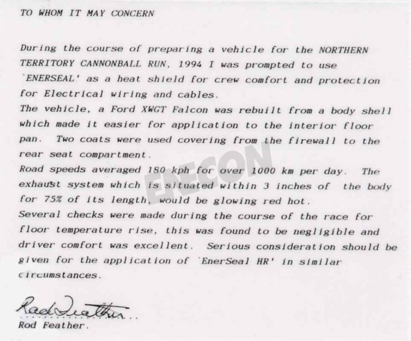 Heat Refractive Properties of ENESEAL HR Put to the Ultimate Test in Australia’s “Cannonbal Run”