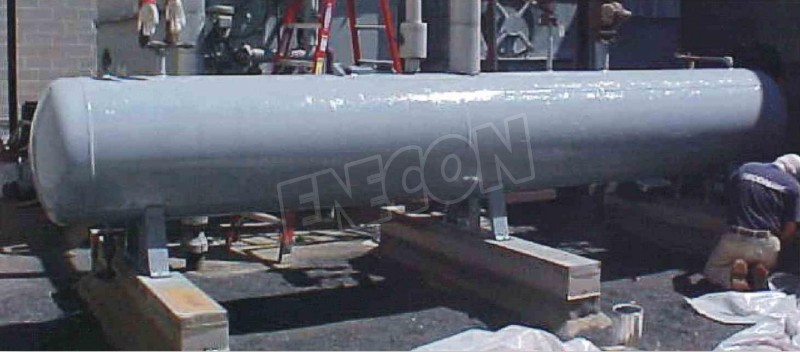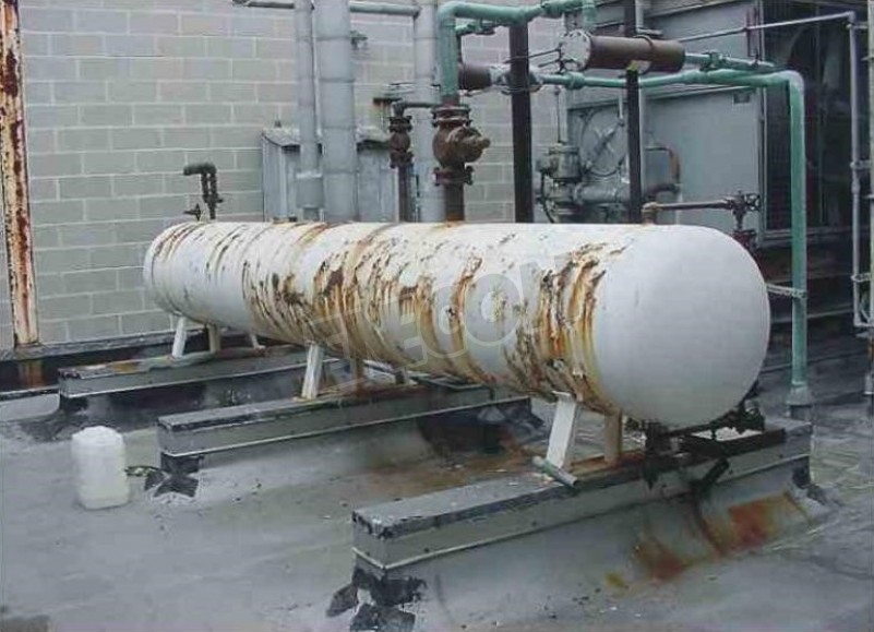 Badly rusted pressure tank and support legs. Project called for grit blasting tank and supports, then treating with CHEMCLAD SC (2 coats).