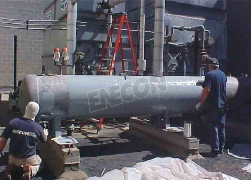 Badly rusted pressure tank and support legs. Project called for grit blasting tank and supports, then treating with CHEMCLAD SC (2 coats).
