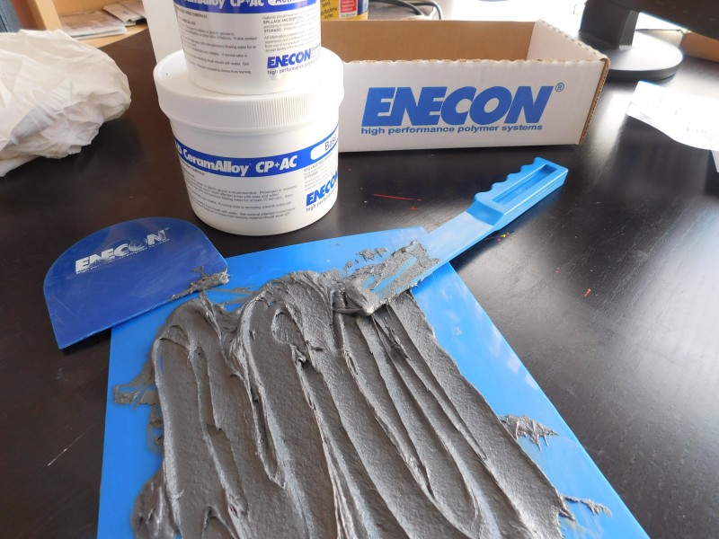 The procedure used was to apply an extra sheet of aluminum over the damaged one, using our CeramAlloy CP+AC as a bonding agent.