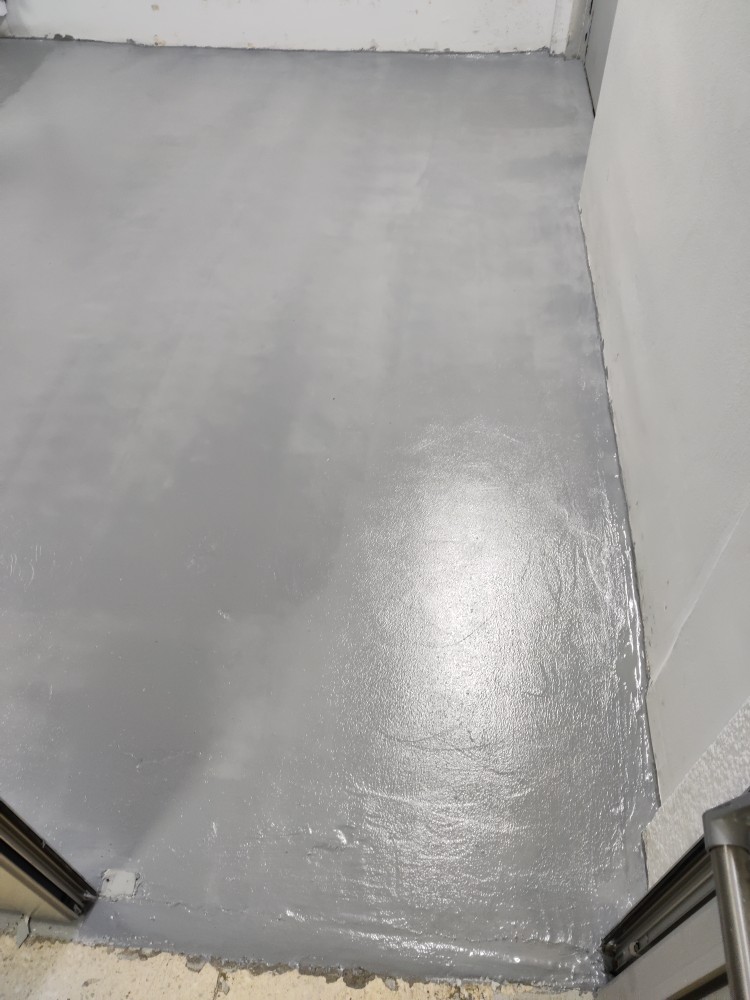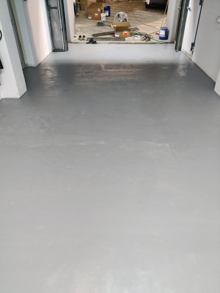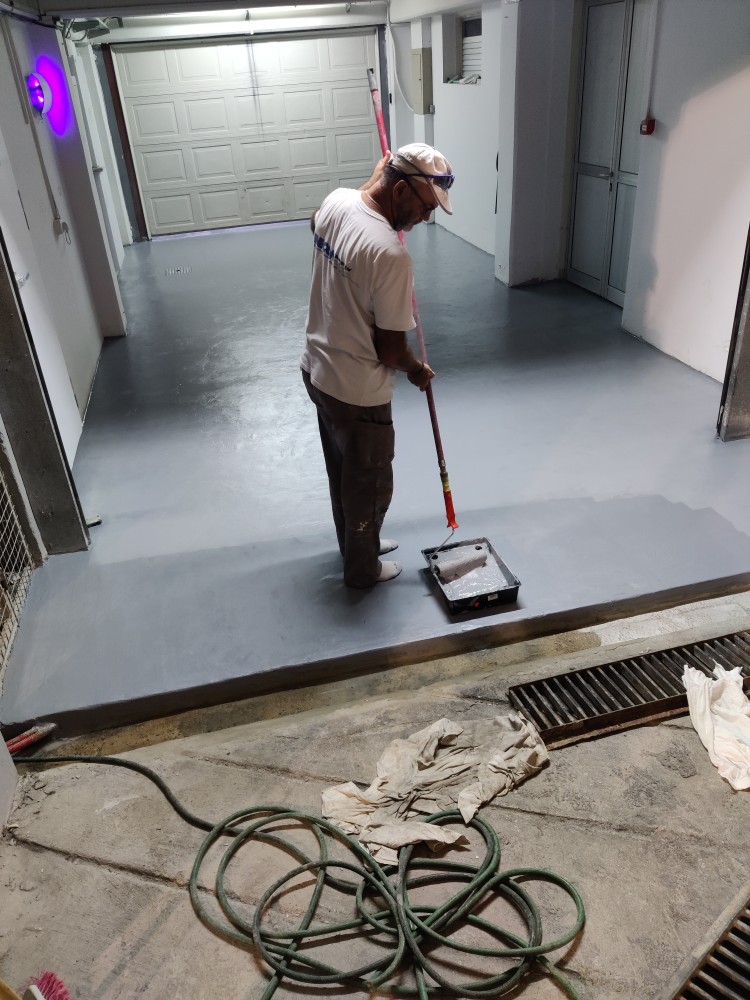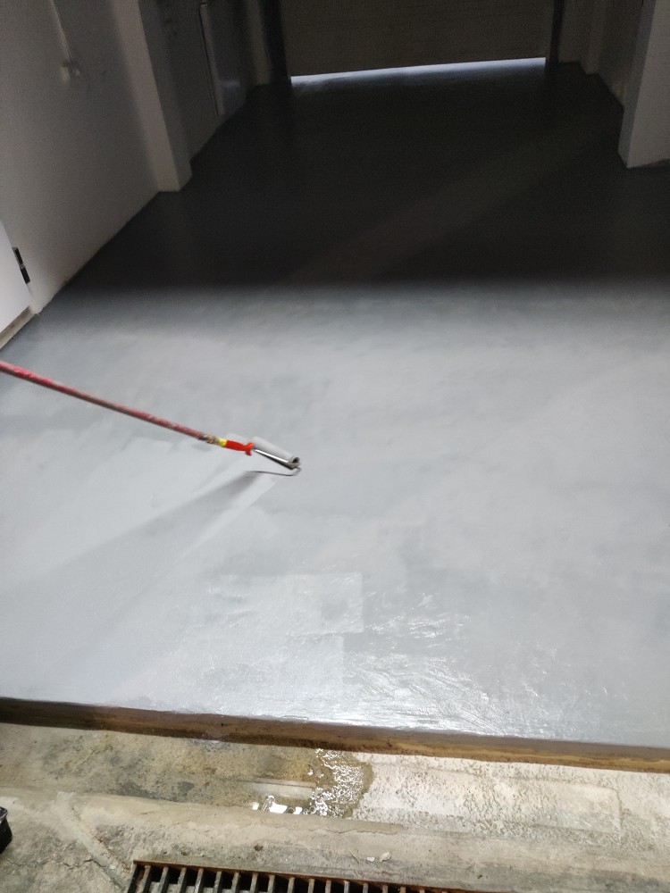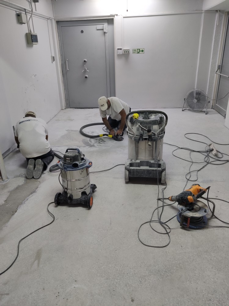 Floor repair and protection from moistures occurring underneath its surface, using ENECRETE WS and ENECLAD WBC.