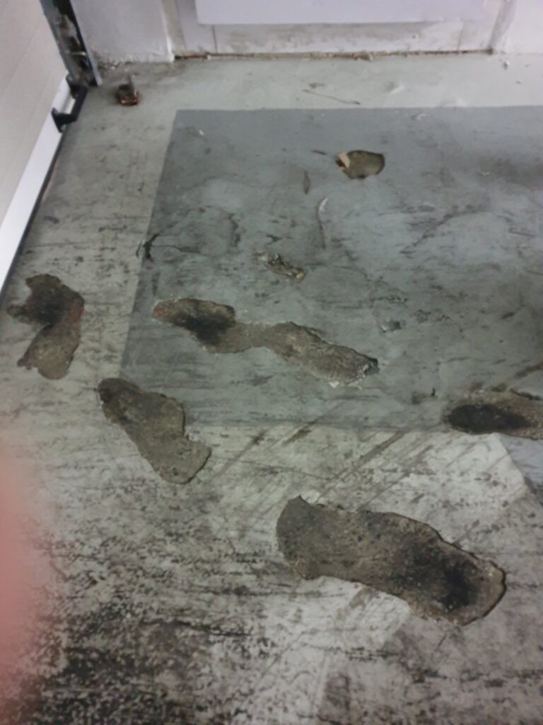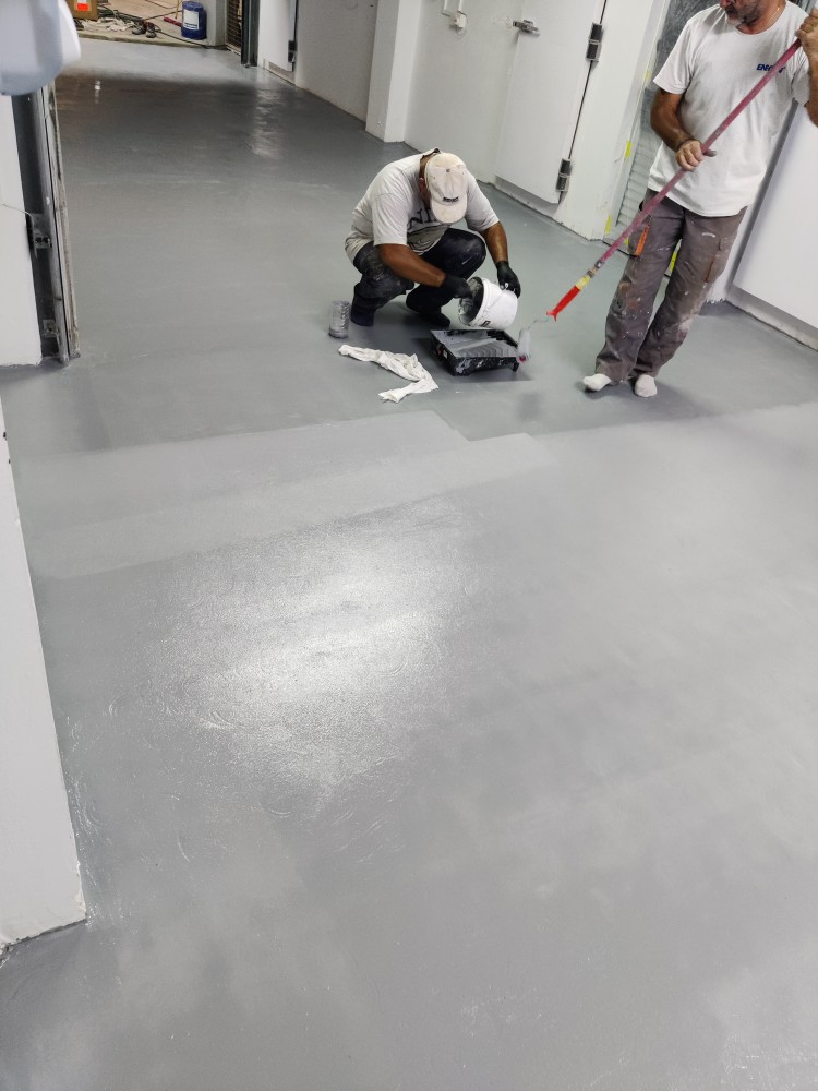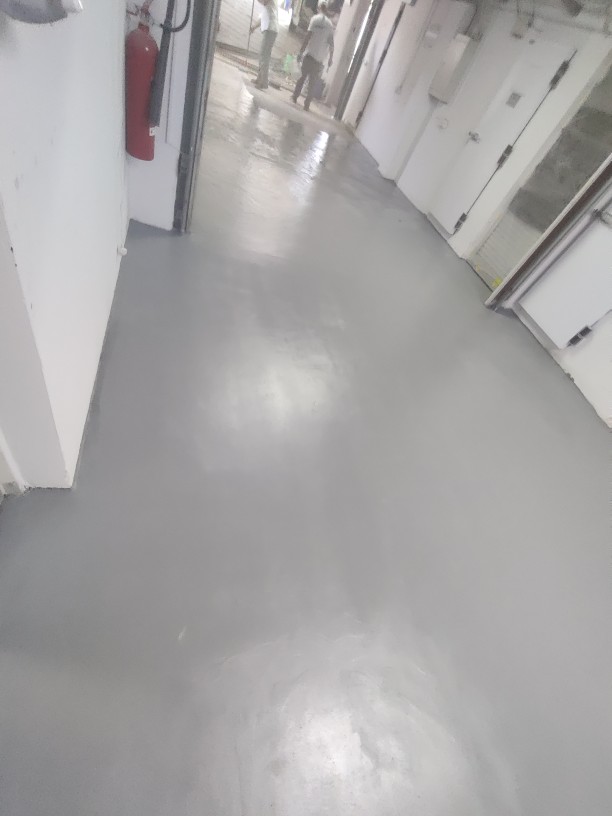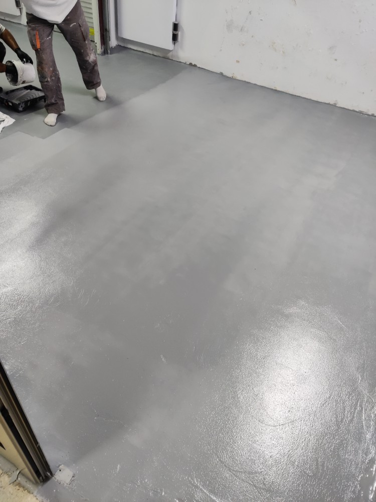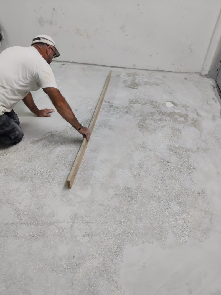 Floor repair and protection from moistures occurring underneath its surface, using ENECRETE WS and ENECLAD WBC.