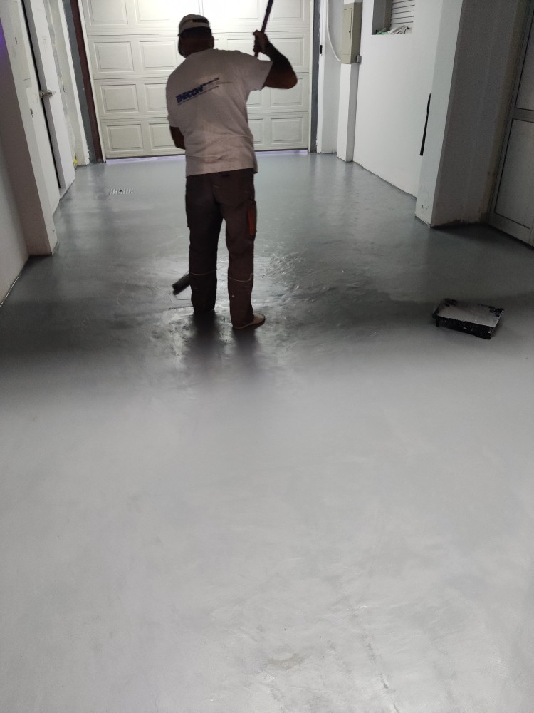 Floor repair and protection from moistures occurring underneath its surface, using ENECRETE WS and ENECLAD WBC.