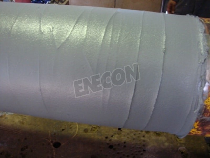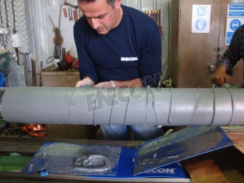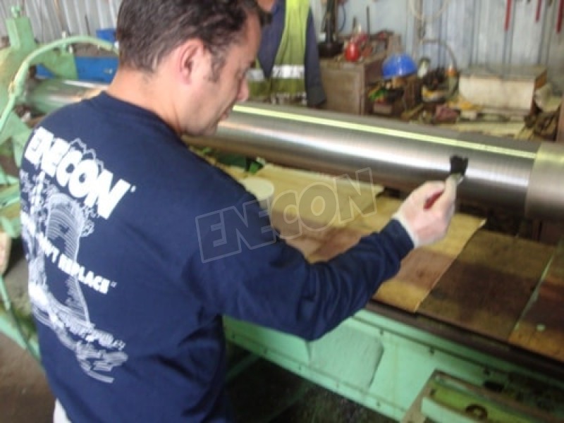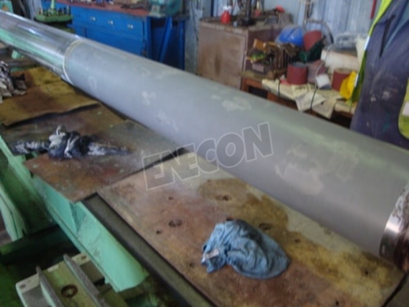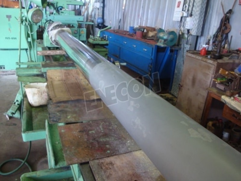 The two large rods were put on a lathe to clean up any corrosion and pitting. The rods were first degreased aiming to eliminate any oils and dirt. Following, ENECON’s DurAlloy was applied proudly to the surface. DurAlloy cures to a metal-hard material creating a permanent bond. FINAL STAGE After machining down to the desired size, extra DurAlloy was added by hand to fill in small air holes. The two rods were then sanded. Finally, we proceeded in rubbing some molybdenum di-sulfide anti-scuff paste in order to achieve a smooth surface for the seal.