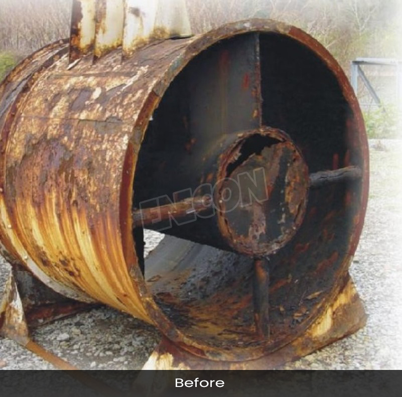 The results speak for themselves. A tremendous amount of surface prep was involved including grit blasting and welding. ENECON materials included just 4 units of DurAlloy and 3 units of CHEMCLAD SC.