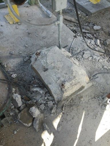 During a planned weekend outage this base was repaired using the ENECON ENECRETE DuraFill epoxy mixed with sand. This material will bond to the existing concrete as well as curing at 10,000 psi which is more than double the strength of ready-mix concrete.