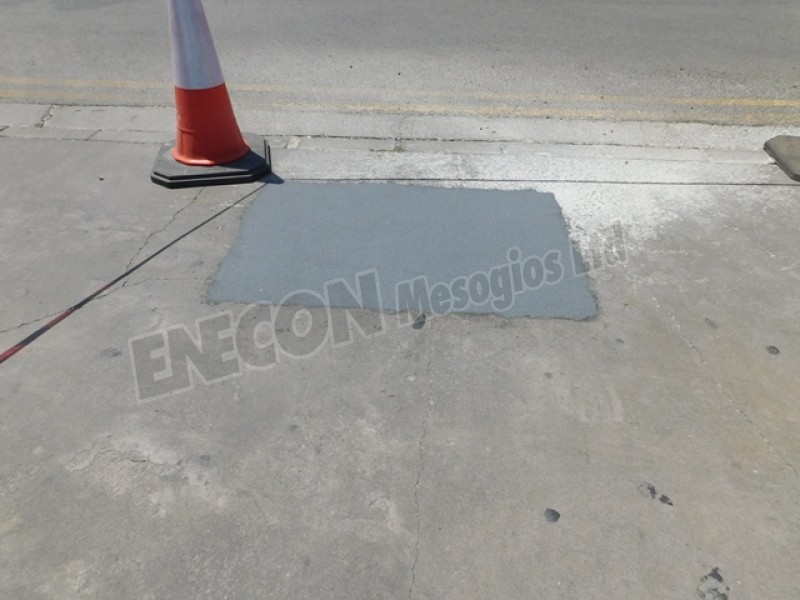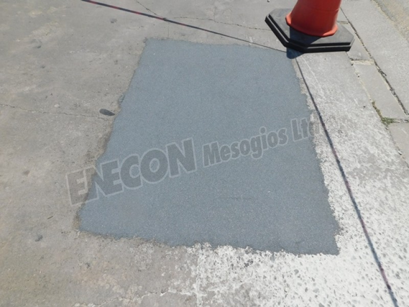 Client wanted to do a patch repair at the entrance of the building and since cement materials failed, they called us. This repair was applied back in 2016 and even with a continuous traffic passing over, no damage (peeling or crack) has occurred.